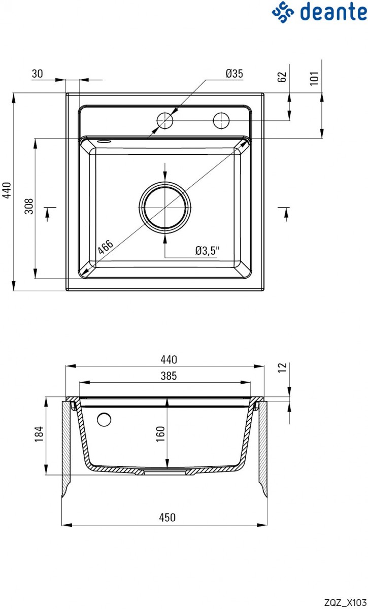 Кухонная мойка Deante Zorba ZQZ_2103 44x44 графит - ширина: 44 см, длина: 44 см, глубина чаши: 160 см, цвет: Графит, материал: Гранит