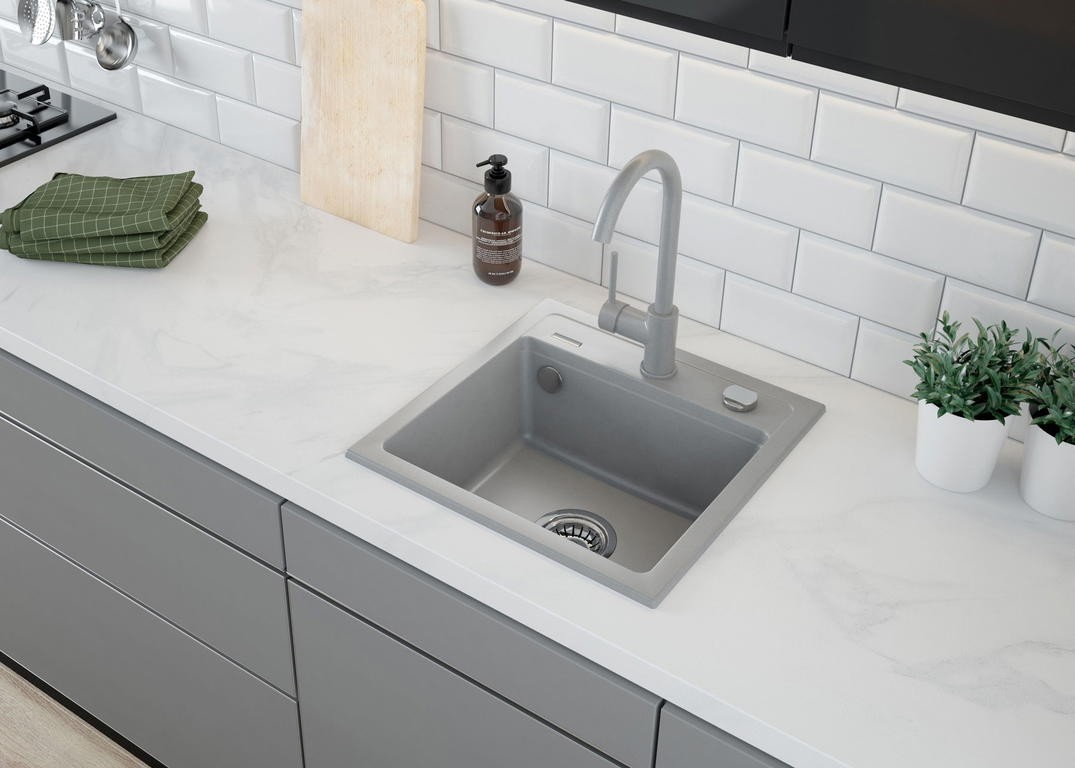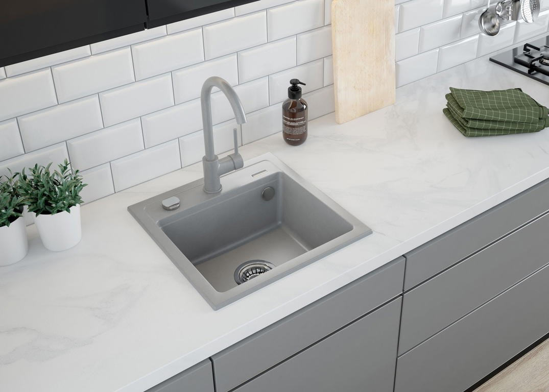 Мойка кухонная Deante Zorba ZQZ_S103, врезная, материал: гранит, поверхность: матовая, ширина: 44 см, длина: 44 см. Сифон в комплекте. Гарантия: 18 лет.