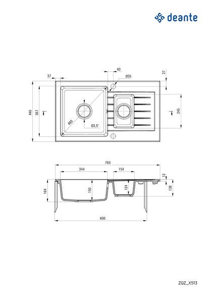 Мойка кухонная Deante Zorba ZQZ_S513, врезная, материал: гранит, поверхность: матовая, ширина: 76 см, длина: 44 см. Сифон в комплекте. Гарантия: 18 лет.