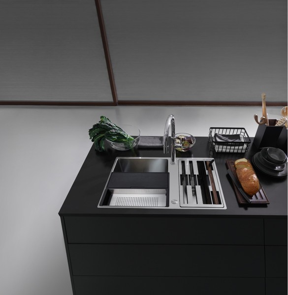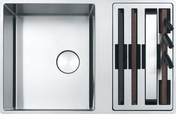 Мойка из нержавеющей стали Box Center BWX 220-41-27 для шкафа 90 см. Выполнена из полированной стали марки AISI 304. Мойка укомплектована: 2 разделочными досками, миской из нержавеющей стали, тремя ножами (для хлеба, овощей, мяса/рыбы), деревянным держателем для ножей.
