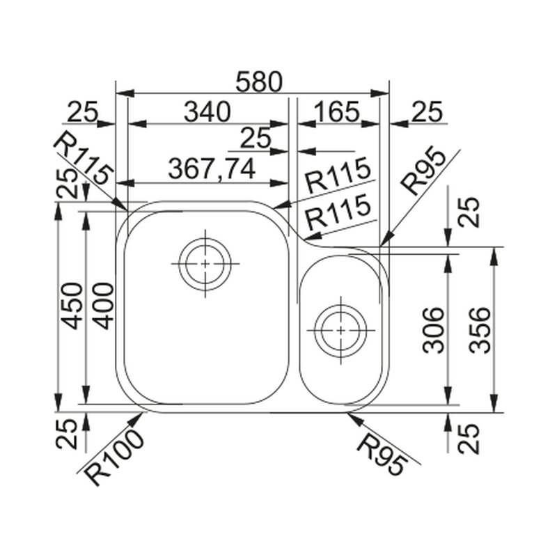 Мойка для кухни Franke AMX 160. Размер чаши: 34x40x19 см, 16.5x30.65 х13 см
