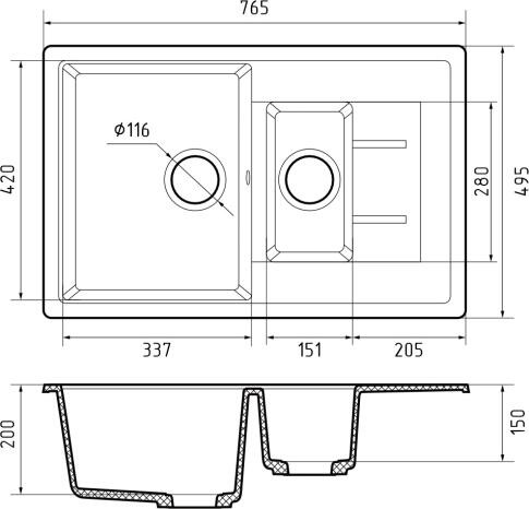 Мойка кухонная GranFest QUADRO Q-775KL черный