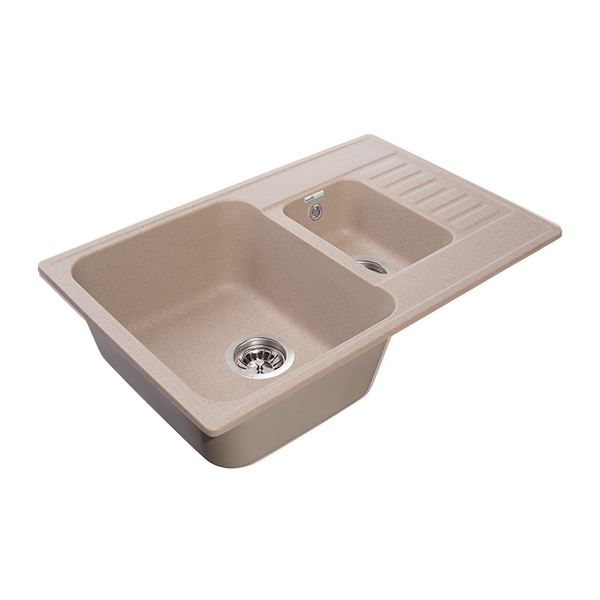 Мойка для кухни GranFest QUARZ Z-21K (песочный). Размер чаши: 41.9x35x18 см; 26.9x17.8x12 см