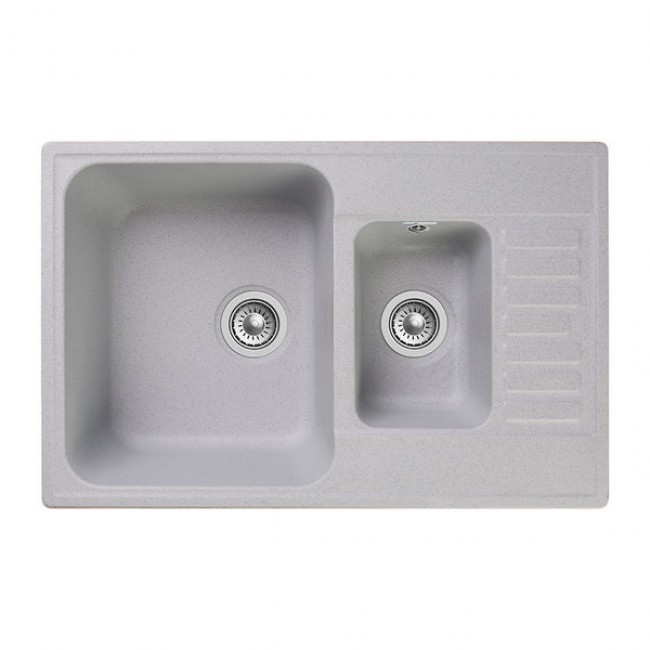 Мойка для кухни GranFest QUARZ Z-21K (серый). Размер чаши: 41.9x35x18 см; 26.9x17.8x12 см