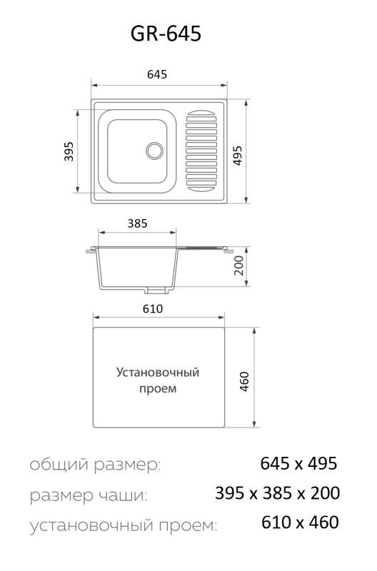 Мойка для кухни Granrus GR-645 (белый). Размер чаши: 39.5x38.5x20 см.