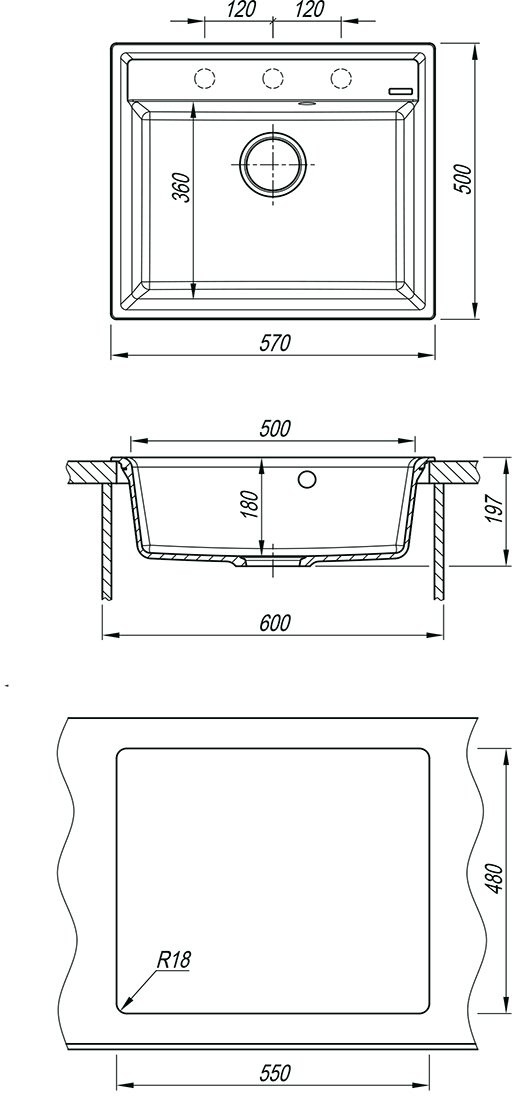 Кухонная мойка Lemark HANKA 570 57x50 грей - ширина: 57 см, длина: 50 см, глубина чаши: 18 см, цвет: Серый, материал: Гранит