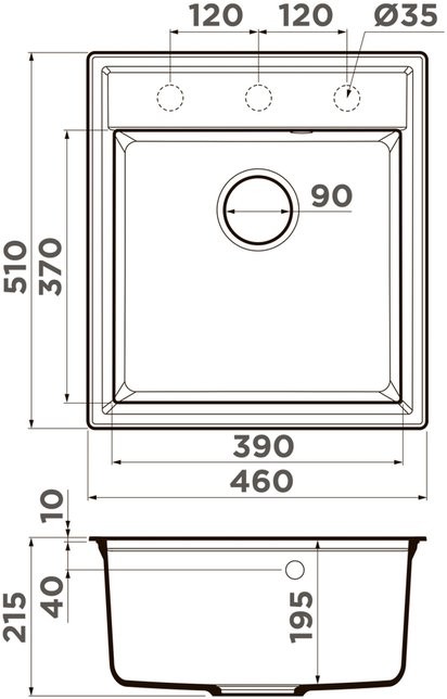- Размер мойки (ШxГ): 46x51 см.