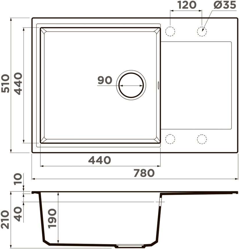 - Размеры мойки (ДхШ) - 51x78 см