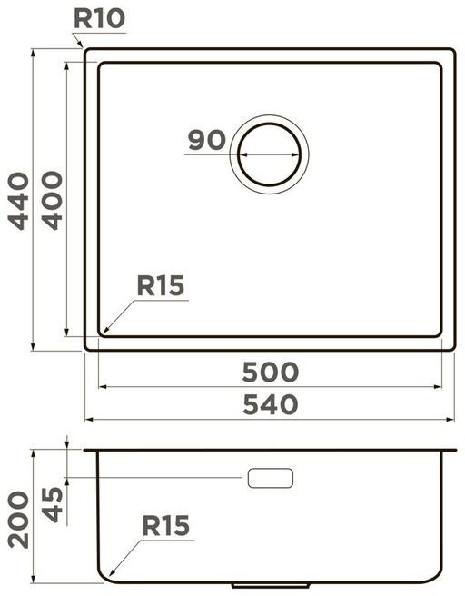 - Тип мойки - врезная под столешницу/ в столешницу сверху
