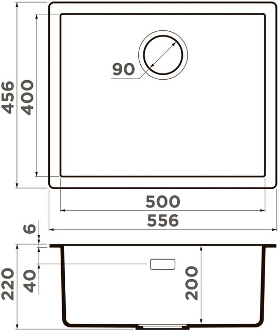 - Размер мойки (ШxД): 55,6х45,6 см.