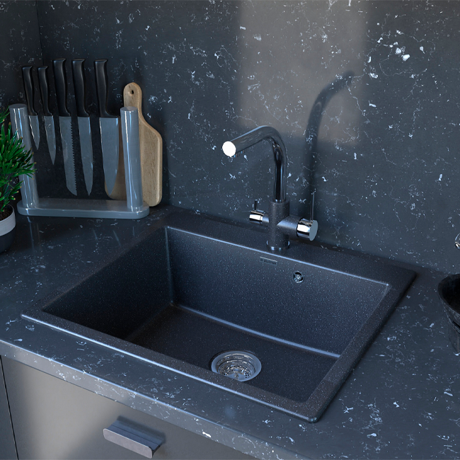 Состоящий из 80% кварца и 20% чрезвычайно твердой акриловой смолы, износостойкий IT-GRANIT® будет дарить вам свою красоту на протяжении многих лет эксплуатации, сохраняя первоначальный внешний вид и глубину цвета. Мойки из материала IT-GRANIT® от PAULMARK обработаны специальным биоцидным составом на основе ионов серебра. Это позволяет уменьшить рост бактерий и микробов на поверхности мойки до 99%. В то же время IT-GRANIT® остается устойчивым к ударам, царапинам, образованию пятен и обесцвечиванию, устойчив к уф-излучению и воздействию высоких температур вплоть до 280° С.