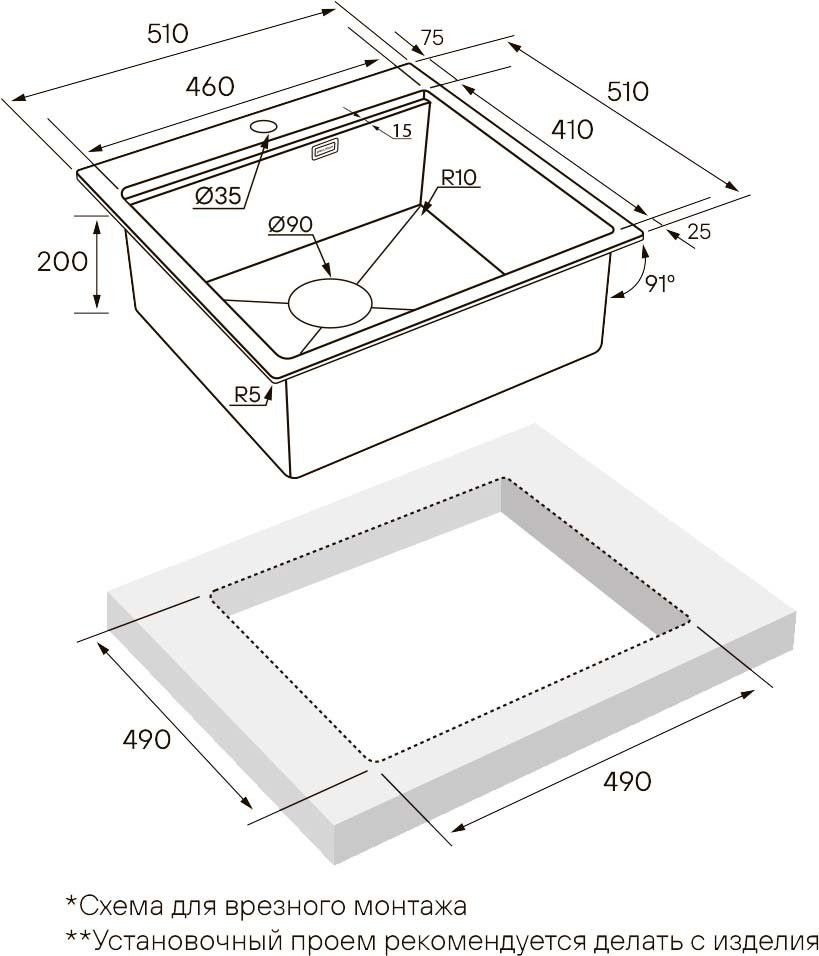 - Тип: мойка кухонная