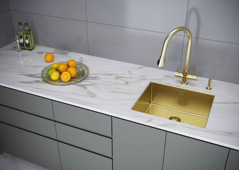 Мойка для кухни Paulmark LASSAN 44 UNI LA44-LG 44x44 светлое золото, Ширина: 44 см, Длина: 44 см, Глубина чаши: 20 см, Цвет: Золото, Материал: Нержавеющая сталь