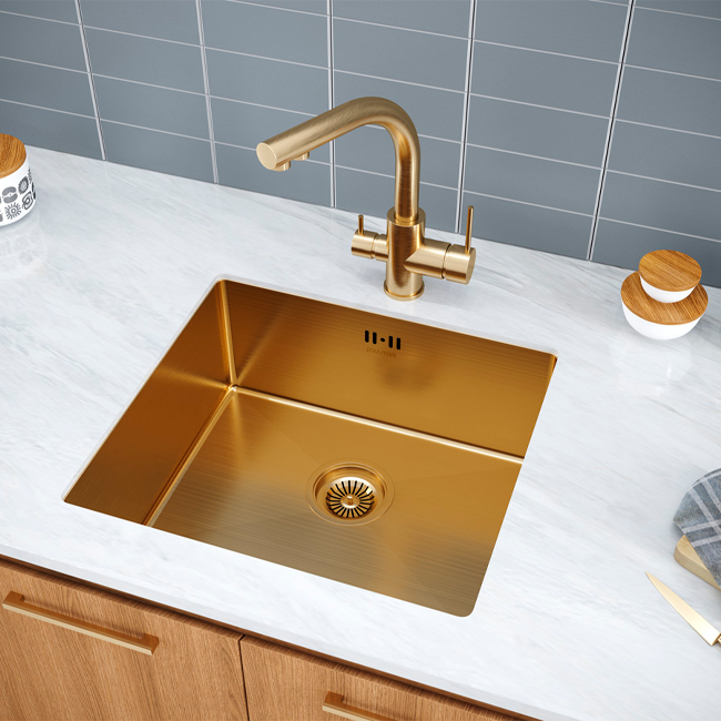 Мойка для кухни Paulmark Marx PM214844-BG брашированное золото, Ширина: 48 см, Длина: 44 см, Глубина чаши: 20 см, Цвет: Брашированное золото, Материал: Нержавеющая сталь