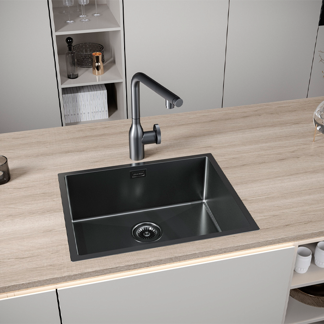 Мойка для кухни Paulmark Next-540 PM215444-GM вороненая сталь, Ширина: 54 см, Длина: 44 см, Глубина чаши: 20 см, Цвет: Чёрный, Материал: Нержавеющая сталь