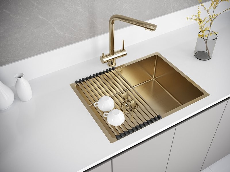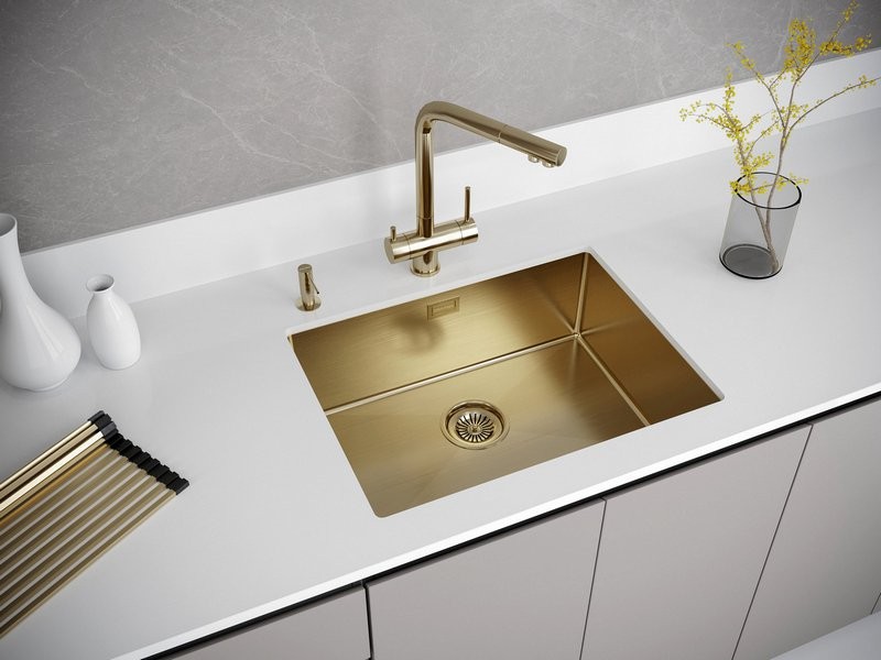 Мойка для кухни Paulmark Next PM215844-BG 58x44 брашированное золото, Ширина: 58 см, Длина: 44 см, Глубина чаши: 20 см, Цвет: Брашированное золото, Материал: Нержавеющая сталь