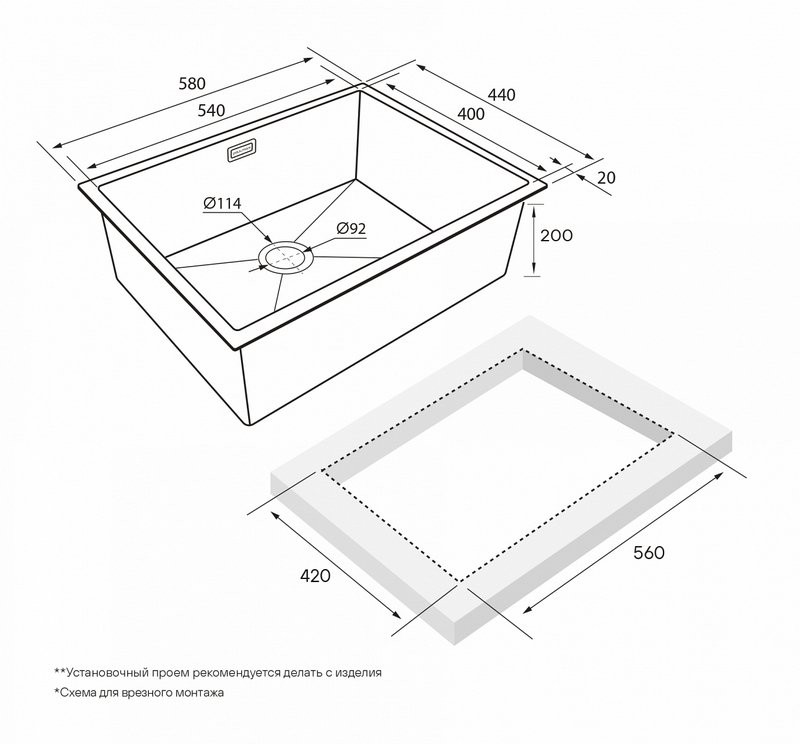 - Установка - врезная вровень, под, на столешницу