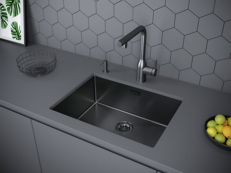 Мойка для кухни Paulmark Next PM215844-GM 58x44 оружейная сталь, Ширина: 58 см, Длина: 44 см, Глубина чаши: 20 см, Цвет: Графит, Материал: Нержавеющая сталь
