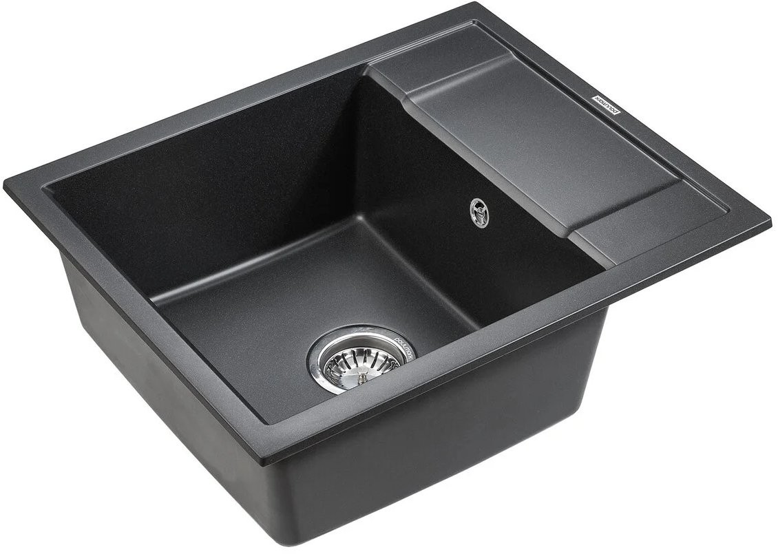 Мойка для кухни Paulmark Optimum PM216050-BL 60x50 черная, Ширина: 60 см, Длина: 50 см, Глубина чаши: 20 см, Цвет: Чёрный, Материал: Искусственный камень