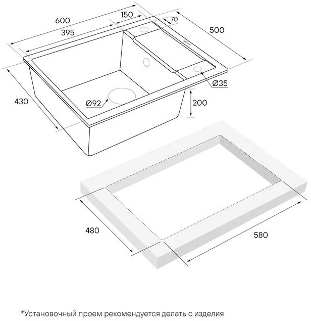 - Отверстие под смеситель: нет готовых