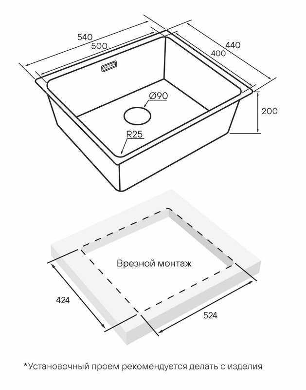 - Установка - врезная под, на столешницу