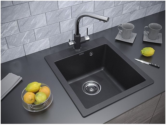 Мойка для кухни Paulmark Zemar PM104651-BL черный, Ширина: 46.5 см, Длина: 51 см, Глубина чаши: 20 см, Цвет: Чёрный, Материал: Искусственный камень