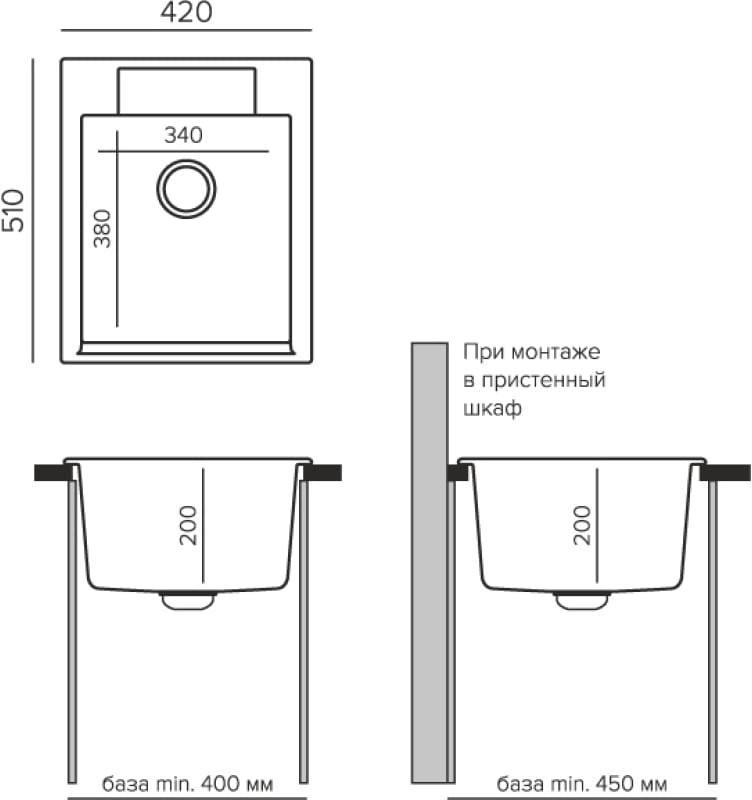 Кухонная мойка Polygran ARGO 420 №314 42x51 светло-серый - ширина: 42 см, длина: 51 см, глубина чаши: 20 см, цвет: Серый, материал: Искусственный камень