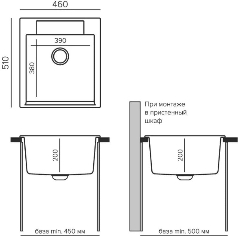 Кухонная мойка Polygran ARGO 460 №327 46x51 кремовый - ширина: 51 см, длина: 46 см, глубина чаши: 20 см, цвет: Бежевый, материал: Искусственный камень