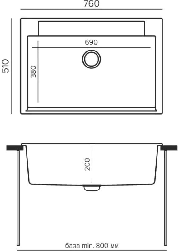 Кухонная мойка Polygran ARGO 760 №316 76x51 космос - ширина: 51 см, длина: 76 см, глубина чаши: 20 см, цвет: Чёрный, материал: Искусственный камень