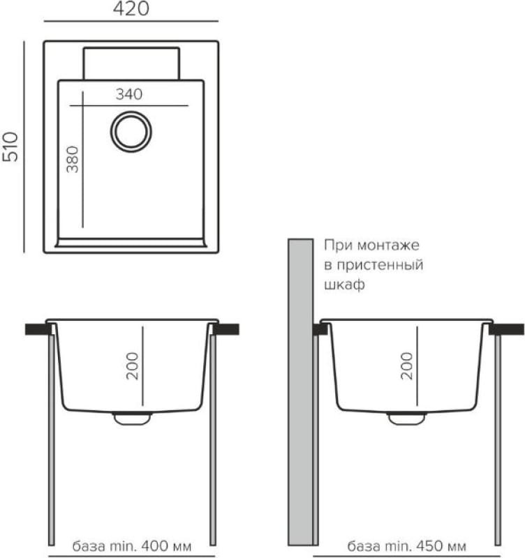 Мойка для кухни Polygran Argo 854635 космос №316, Ширина: 42 см, Длина: 51 см, Глубина чаши: 20 см, Цвет: Чёрный, Материал: Гранит