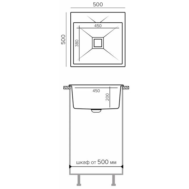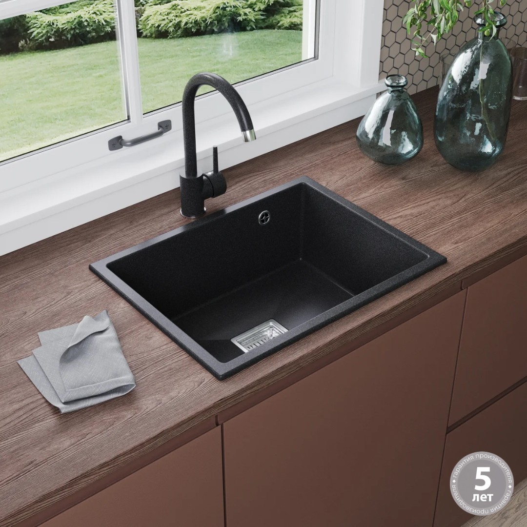 Мойка кухонная Polygran BLADE 500, космос №316 (черный металлик), врезная на столешницу, искусственный камень, квадратная, размеры (ШхД): 50x50 см