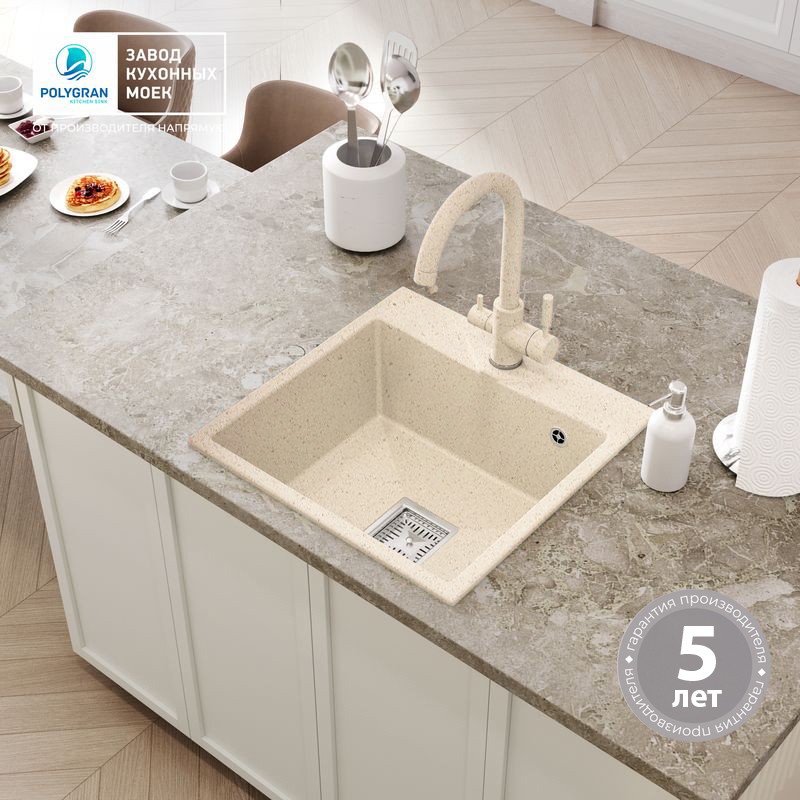 Мойка кухонная Polygran BLADE 500, Кремовый №327, врезная на столешницу, искусственный камень, квадратная, размеры (ШхД): 50x50 см