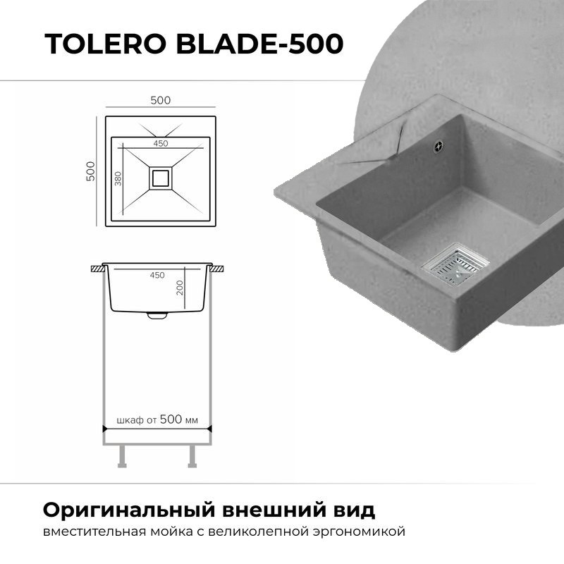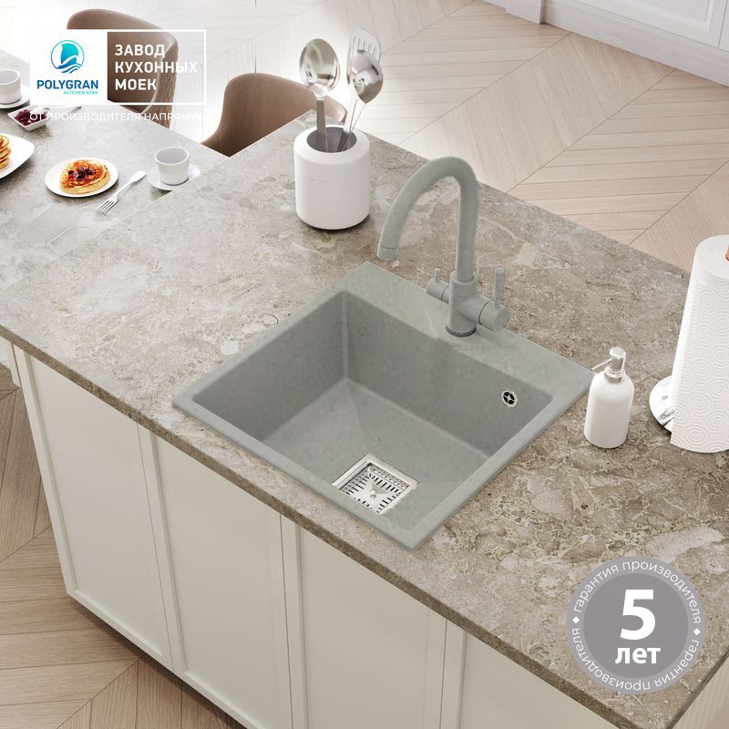 Мойка кухонная Polygran BLADE 500, Серый №14, врезная на столешницу, искусственный камень, квадратная, размеры (ШхД): 50x50 см