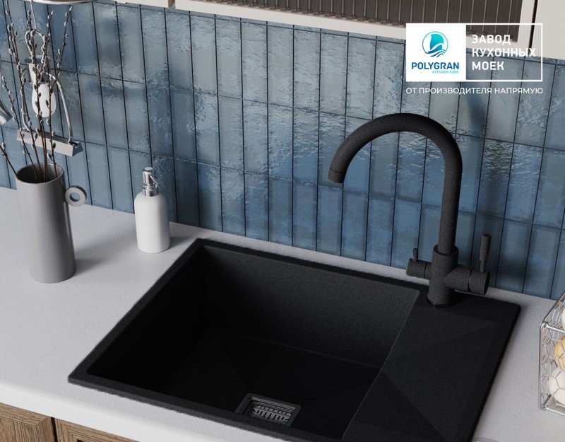 Мойка для кухни Polygran Blade 660 66x50 черный, Ширина: 66 см, Длина: 50 см, Глубина чаши: 20 см, Цвет: Чёрный, Материал: Искусственный камень