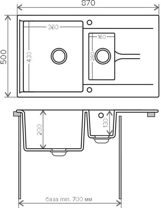 POLYGRAN Brig-870 - это средняя прямоугольная мойка с двумя чашами с небольшим крылом (стекателем). Установка мойки универсальная, так как нет готовых отверстий под смеситель при монтаже мойку можно поворачивать и дополнительная чаша с крылом может быть как справа так и слева. На крыле можно размещать вымытую посуду для сушки, мытые овощи и фрукты.