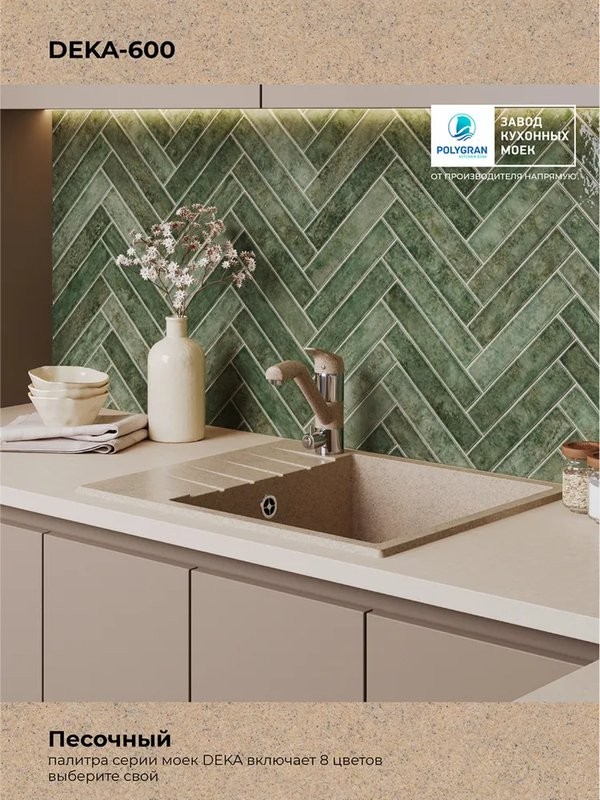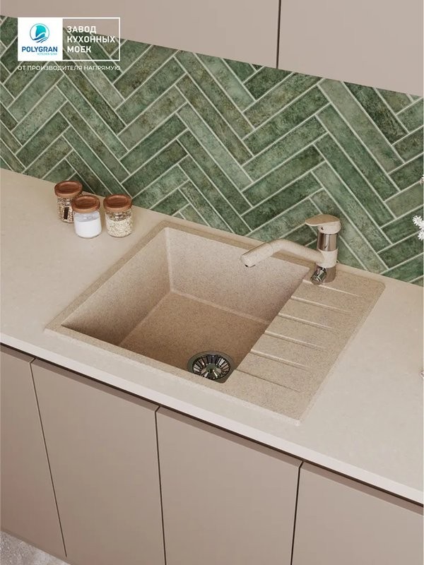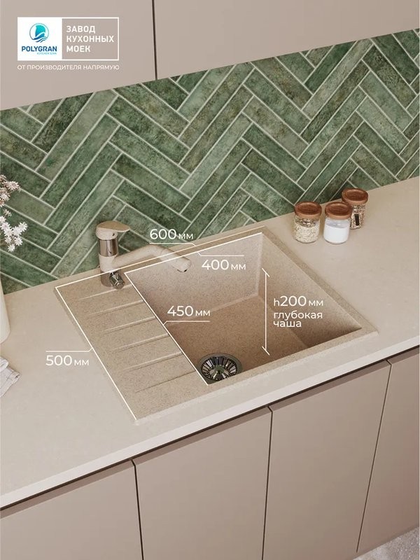 Мойка для кухни Polygran DEKA 600 60x50 песочный, Ширина: 60 см, Длина: 50 см, Глубина чаши: 20 см, Цвет: Бежевый, Материал: Искусственный камень