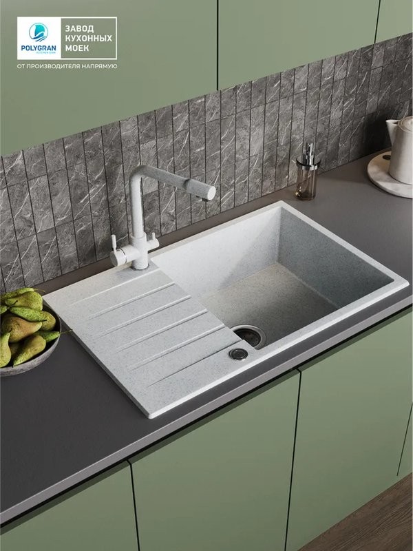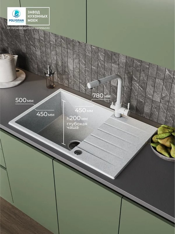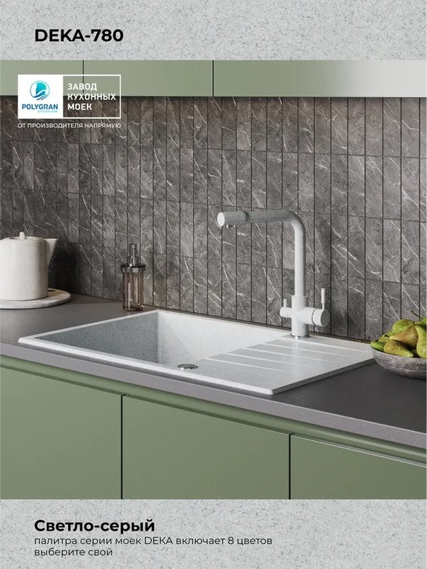 Мойка для кухни Polygran DEKA 780 78x50 светло-серый, Ширина: 78 см, Длина: 50 см, Глубина чаши: 20 см, Цвет: Серый, Материал: Искусственный камень