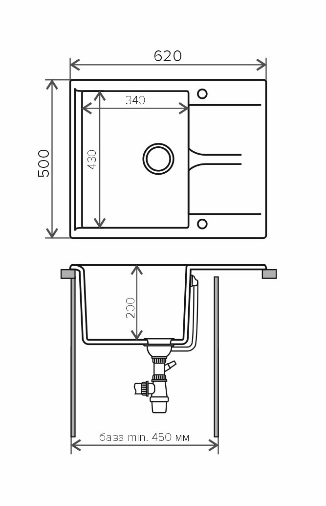 Кухонная мойка Polygran Gals 620 №328 опал - ширина: 62 см, длина: 50 см, глубина чаши: 20 см, цвет: Бежевый, материал: Искусственный камень