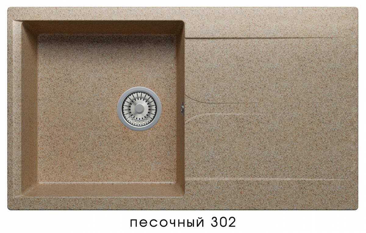 Кухонная мойка Polygran Gals-860 песочный - ширина: 86 см, длина: 50 см, глубина чаши: 20 см, цвет: Бежевый, материал: Искусственный камень
