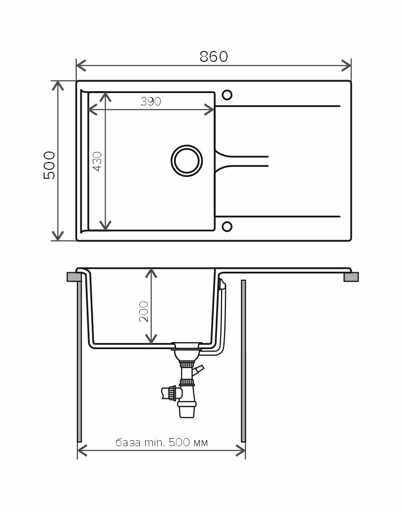 - Размеры мойки (ДхШ) 86x50 см