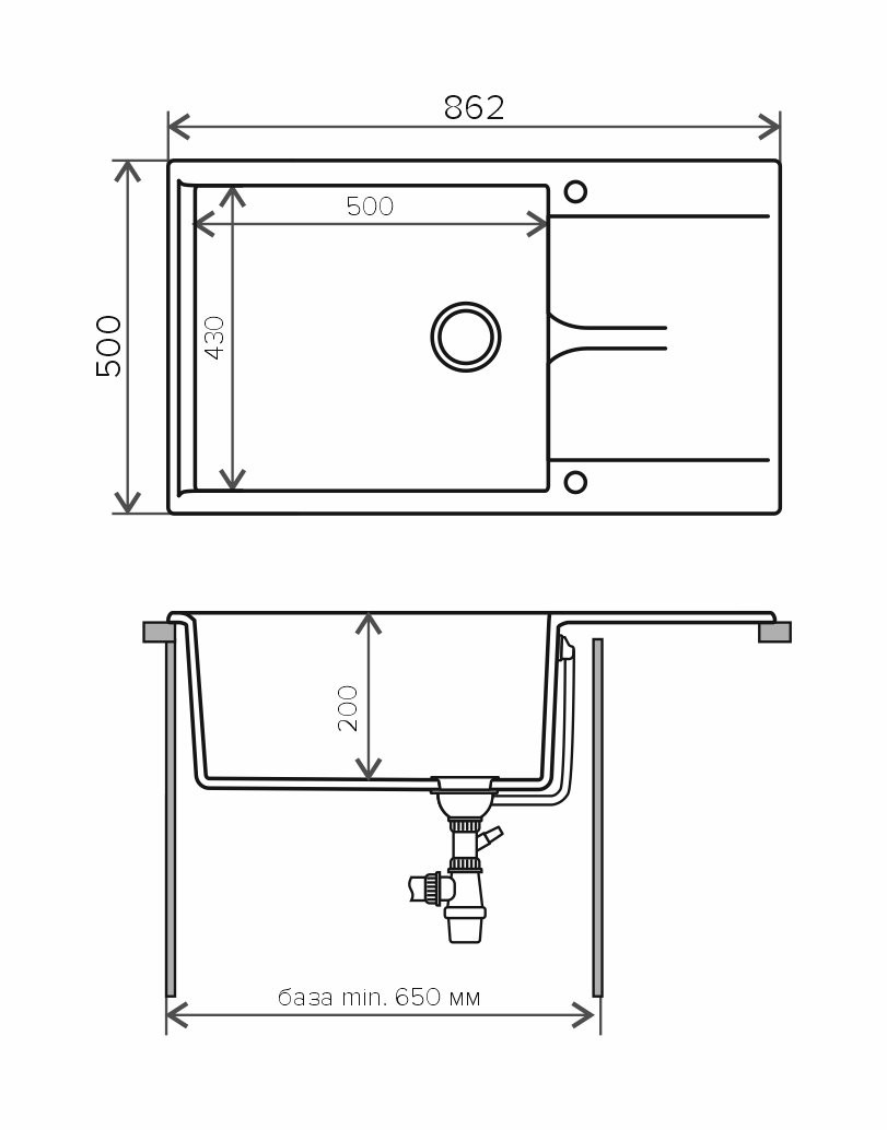 Кухонная мойка Polygran Gals-862 песочный - ширина: 86.2 см, длина: 50 см, глубина чаши: 20 см, цвет: Бежевый, материал: Искусственный камень