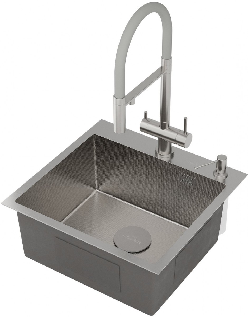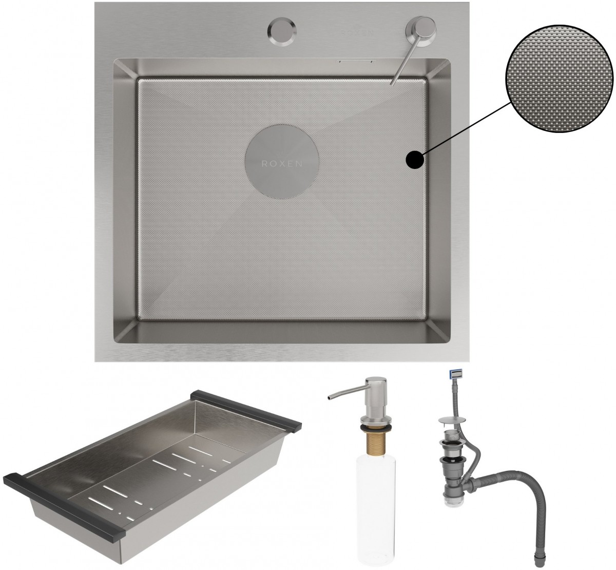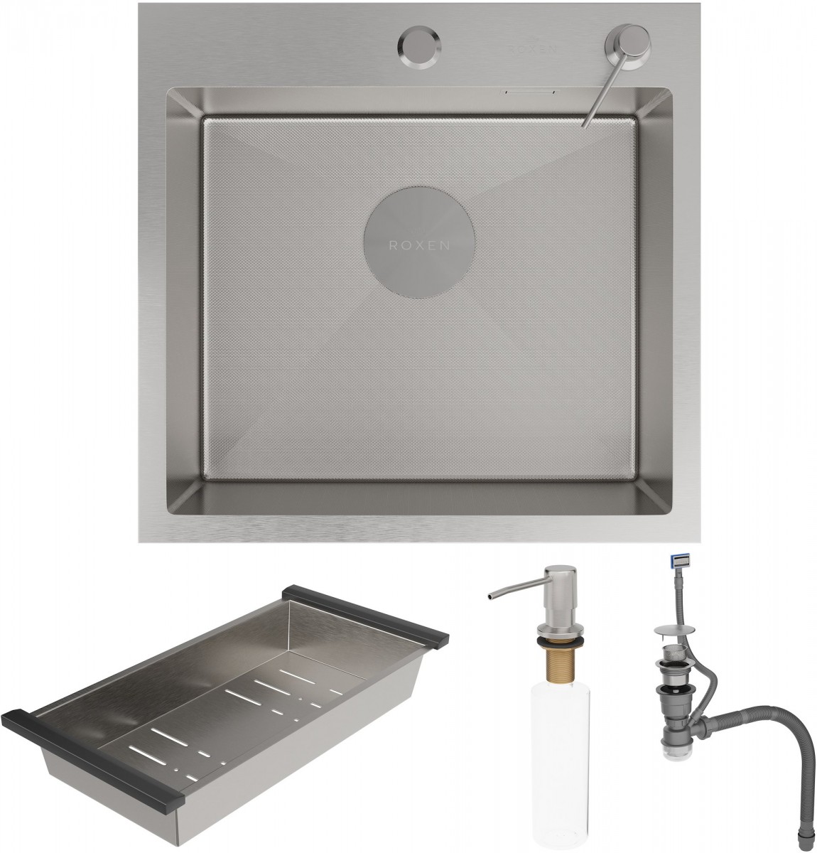 Мойка для кухни Roxen Simple 560220-50-GR 50x48 сатин/зерно, Ширина: 50 см, Длина: 48 см, Глубина чаши: 22 см, Цвет: Сатин, Материал: Нержавеющая сталь