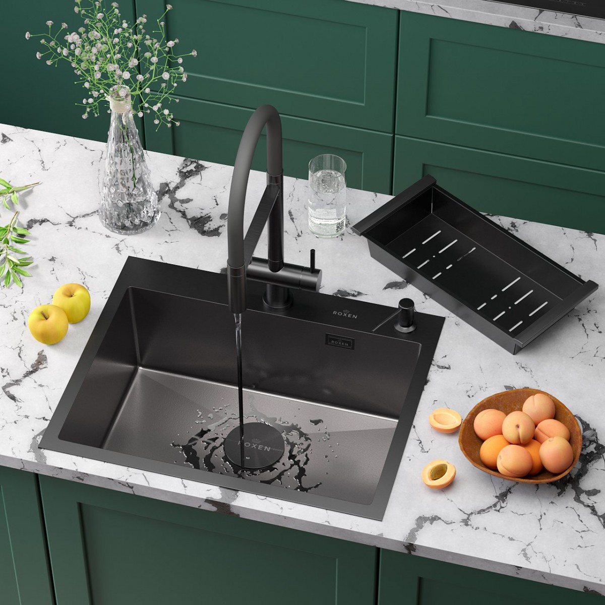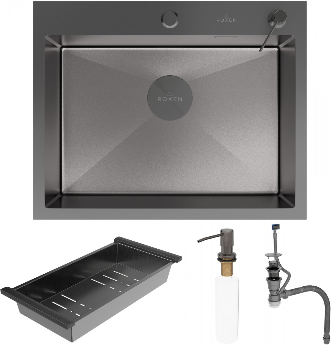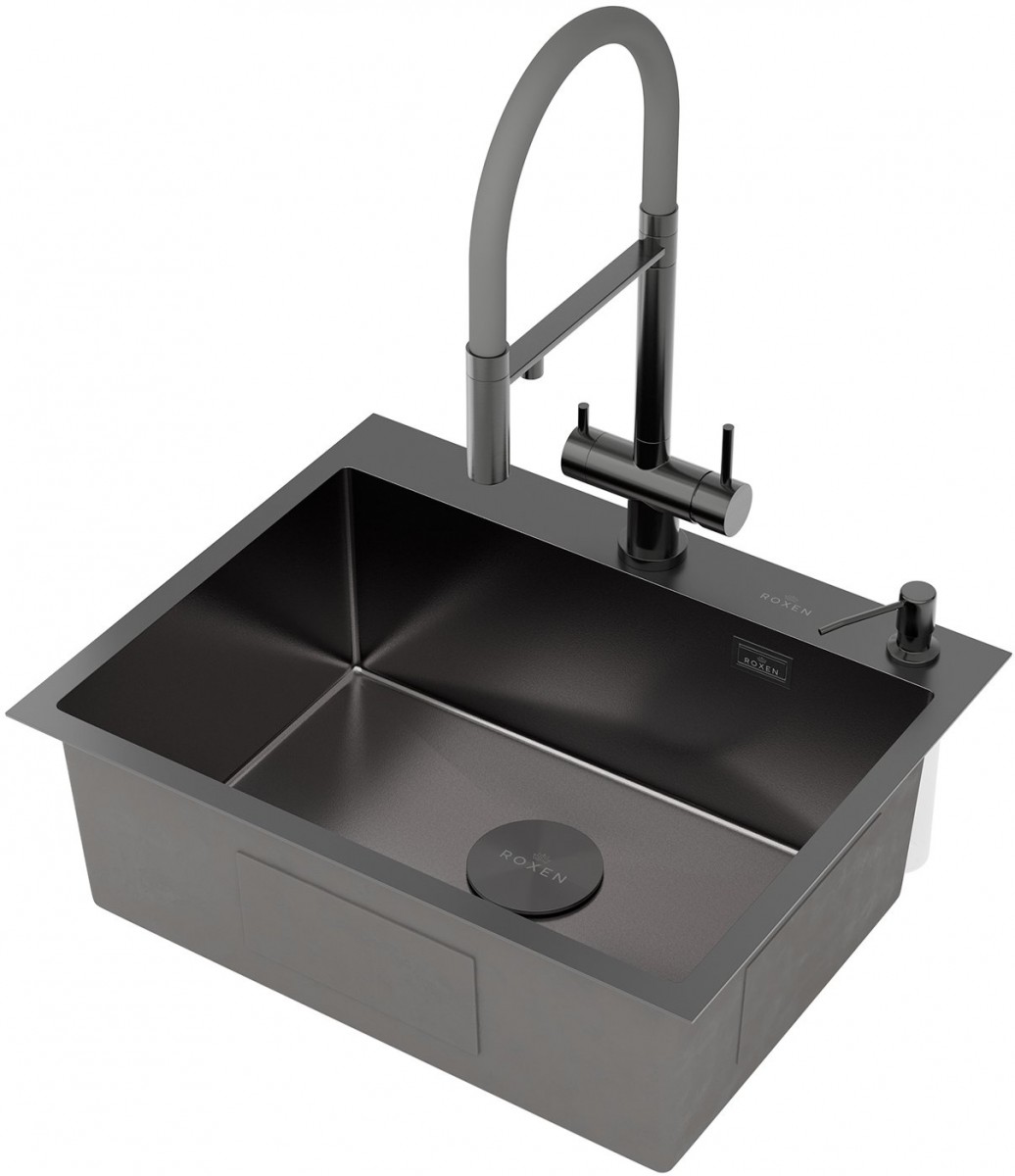 Мойка для кухни Roxen Simple 560220-60B-V 60x48 графит/вулканический песок, Ширина: 60 см, Длина: 48 см, Глубина чаши: 22 см, Цвет: Графит, Материал: Нержавеющая сталь
