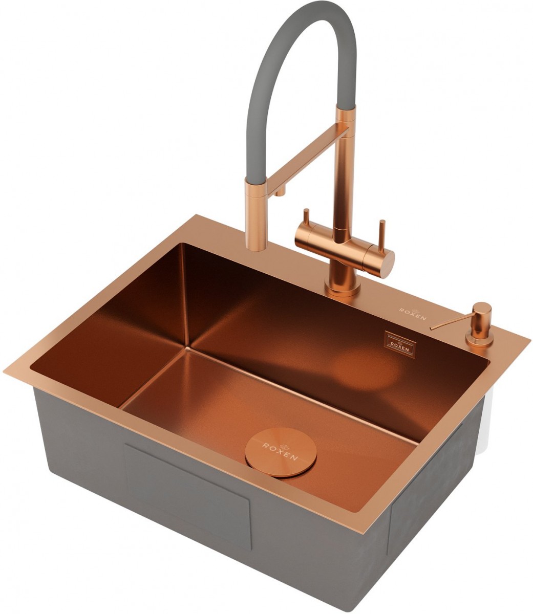 Мойка для кухни Roxen Simple 560220-60BR-V 60x48 бронза/вулканический песок, Ширина: 60 см, Длина: 48 см, Глубина чаши: 22 см, Цвет: Бронза, Материал: Нержавеющая сталь