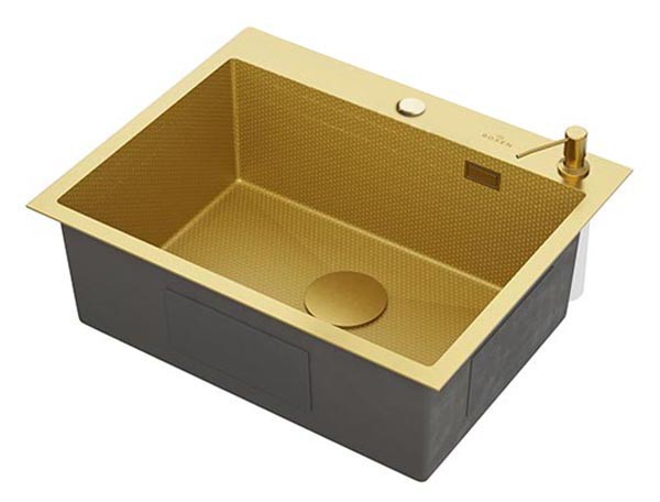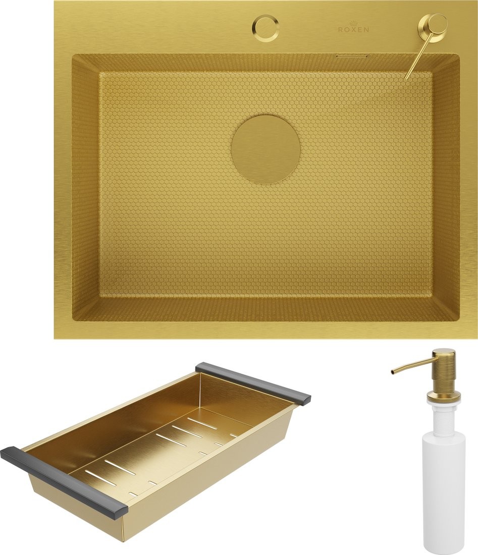Кухонная мойка Roxen Snake 560220-60-GS PVD (gold) с коландером, дозатором и сифоном (износостойкое покрытие)