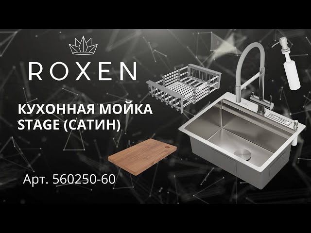 Кухонная мойка Roxen Stage 60 PVD (графит) в комплекте с держателем для ножей, двумя коландерами, разделочной доской и дозатором - это удобная модель с глубокой чашей в цвете графит, сочетает в себе стильный современный дизайн, функциональность и отличные эксплуатационные характеристики. Удобная вместительная чаша дает возможность расположить коландеры на двух уровнях. Держатель для ножей имеет водоотводящую коробку, что поможет ножам всегда оставаться сухими и продлить срок их службы. Мойка изготовлена из аустенитной низкоуглеродистой стали марки AISI 304, которая обладает устойчивостью к коррозии, окислению и перепаду температур. Уникальное покрытие PVD Tech является защитным слоем, устойчивым к истиранию, появлению царапин и механических повреждений. Отличные шумопоглощающие характеристики мойки обеспечиваются шумоподавляющим составом Silent Protection и шумопоглощающими пластинами Soft Silence, которые располагаются по всей чаше мойки.