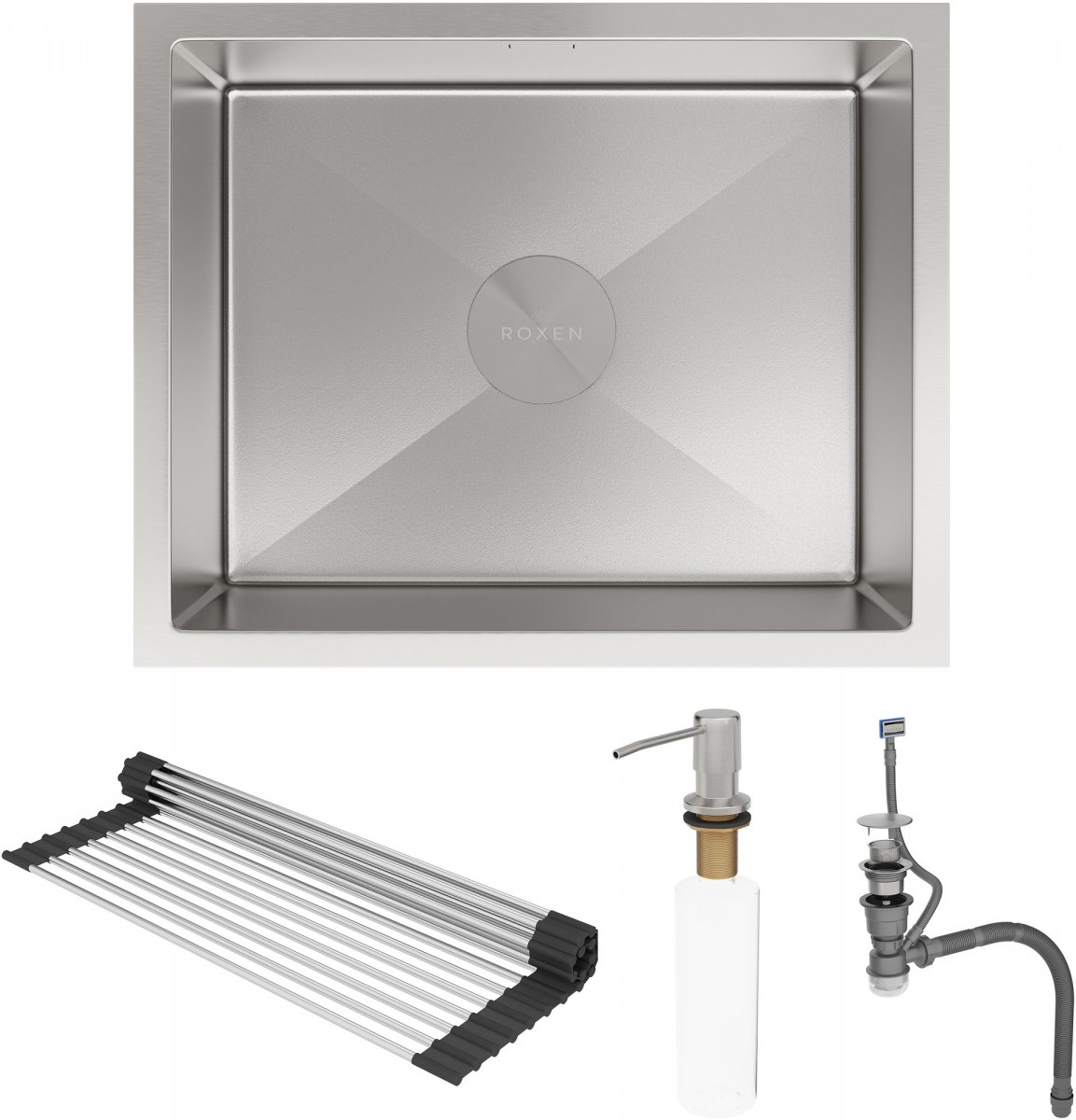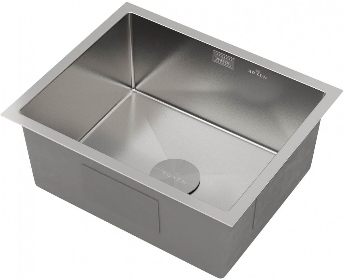 Мойка для кухни Roxen Uno 560210-54-V 54x44 сатин/вулканический песок, Ширина: 54 см, Длина: 44 см, Глубина чаши: 22 см, Цвет: Сатин, Материал: Нержавеющая сталь