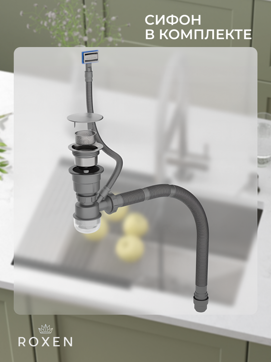 Кухонная мойка Roxen Uno 560210-54-V 54x44 сатин/вулканический песок
