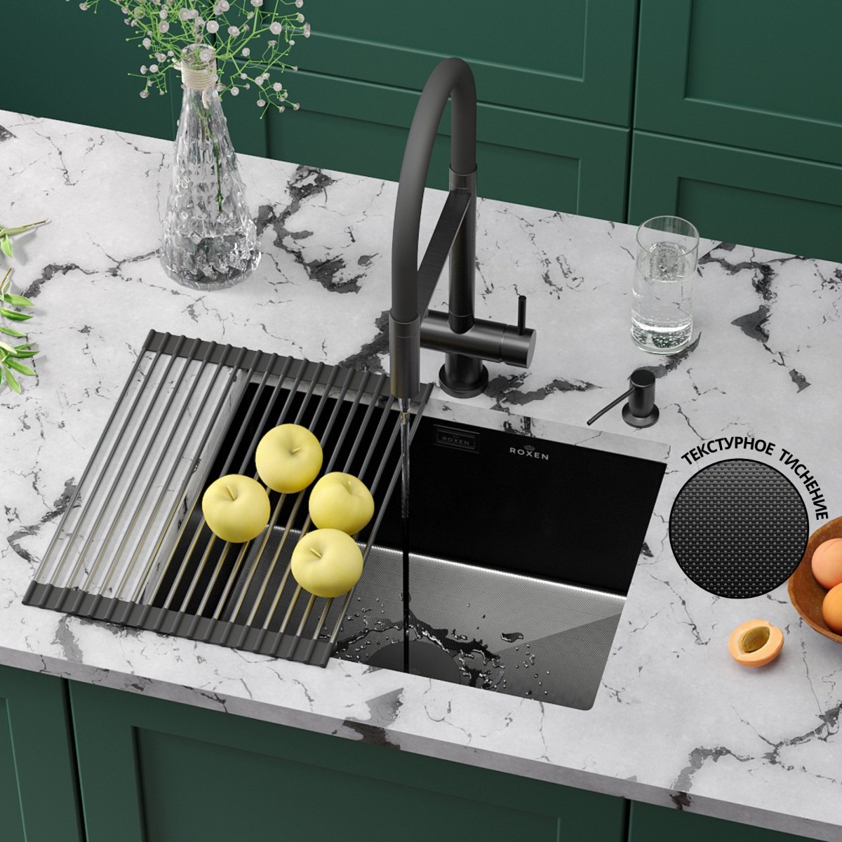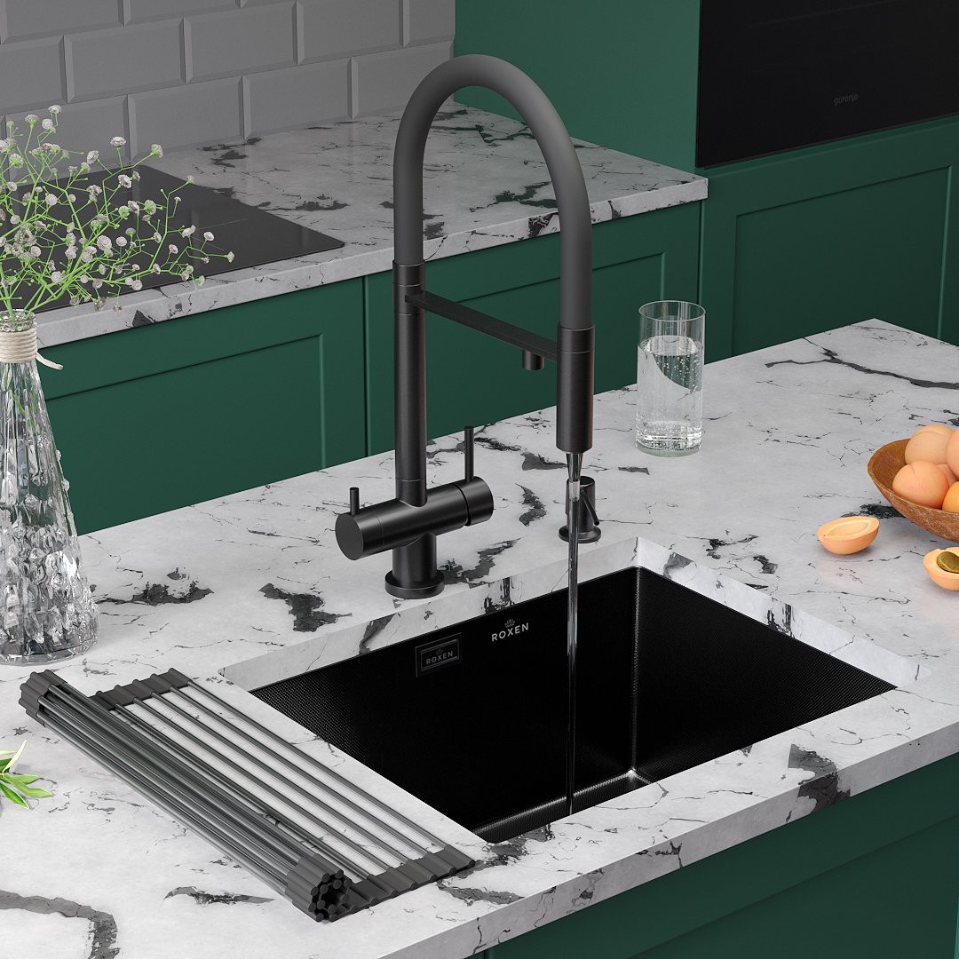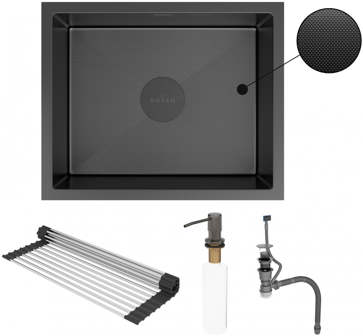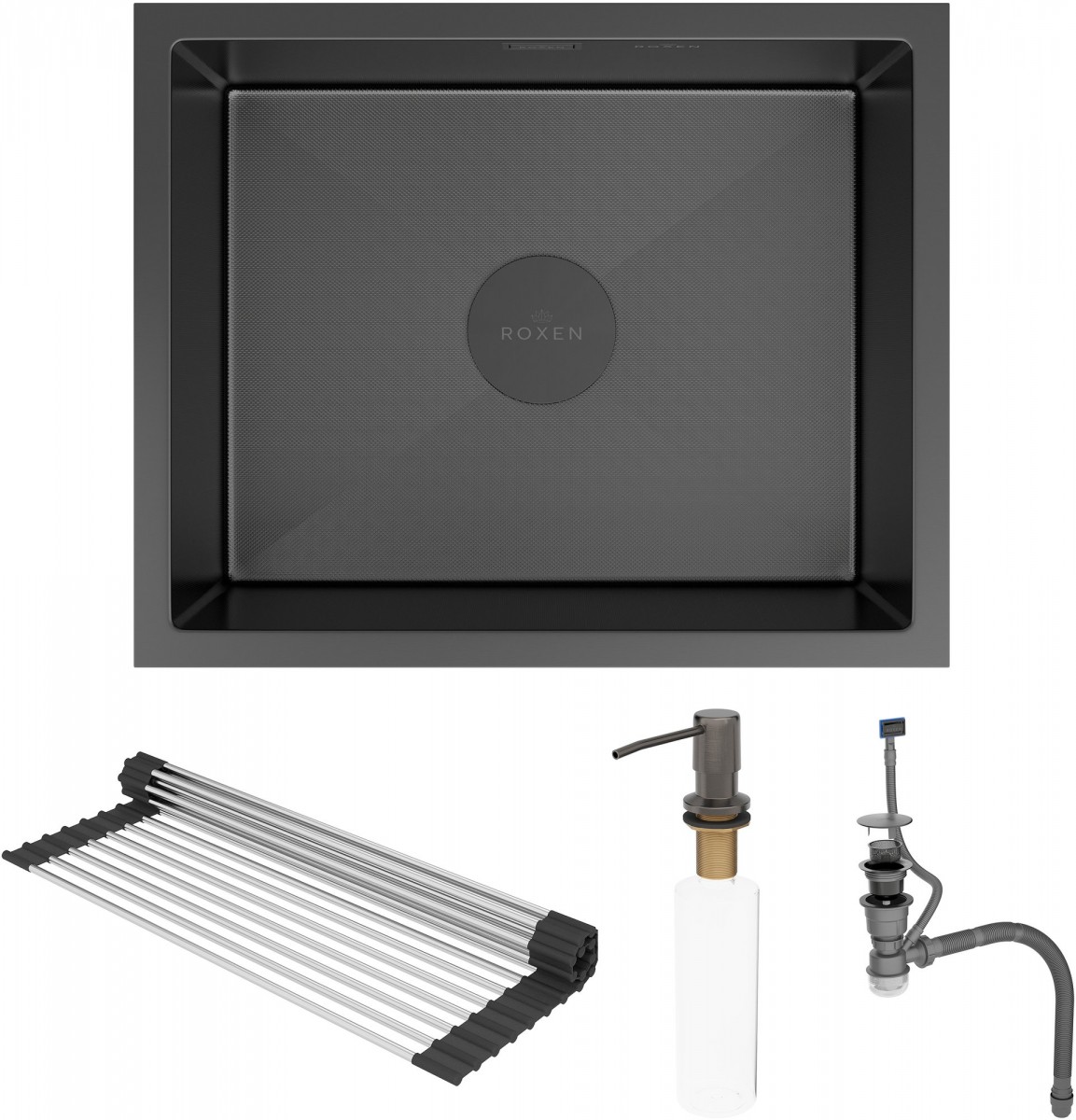 Мойка для кухни Roxen Uno 560210-54B-GR 54x44 графит/зерно, Ширина: 54 см, Длина: 44 см, Глубина чаши: 22 см, Цвет: Графит, Материал: Нержавеющая сталь