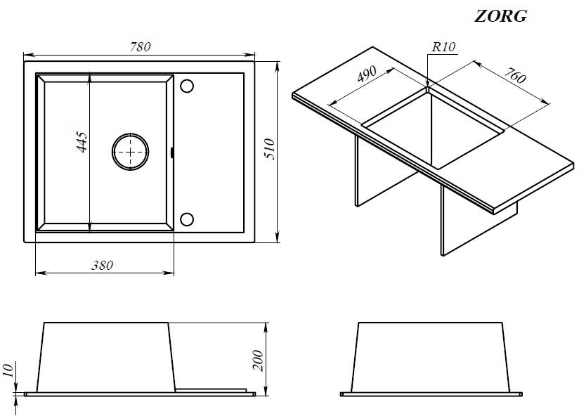 Кухонная мойка с сифоном ZORG Rock 78 PREMIUM alba белый - ширина: 78 см, длина: 51 см, глубина чаши: 20 см, цвет: Белый, материал: Искусственный камень